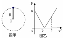 如图甲所示,轻杆一端固定在O点,另一端固定一小球,现让小球在竖直平面内做半径为R的圆周运动。小球运动到最高点时,杆与小球间弹力大小为F,小球在最高点的速度大小为v,其F—v2图象如乙图所示。则( )