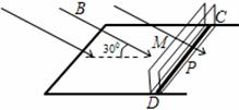 如图所示,不计电阻的光滑U形金属框水平放置,光滑、竖直玻璃挡板H、P固定在框上,H、P的间距很小。质量为0.2kg的细金属杆CD恰好无挤压地放在两挡板之间,与金属框接触良好并围成边长为1m的正方形,其有效电阻为0.1Ω。此时在整个空间加方向与水平面成30°角且与金属杆垂直的匀强磁场,磁感应强度随时间变化规律是B =(0.4 -0.2t)T,图示磁场方向为正方向。框、挡板和杆不计形变。则: