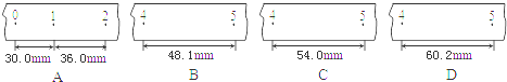 某同学在测定匀变速直线运动的加速度时,得到了几条较为理想的纸带.他已在每条纸带上按每5个点取好一个计数点,即两计数点之间的时间间隔为0.1s,依打点先后编为0、1、2、3、4、5.由于不小心,几条纸带都被撕断了,如图所示.请根据给出的A、B、C、D四段纸带回答:(填字母)