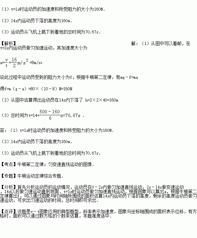 (2)估算14s内运动员下落的高度
