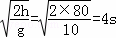 一个物体从80米高的地方自由下落(忽略空气阻力,g=10m/s2),求: