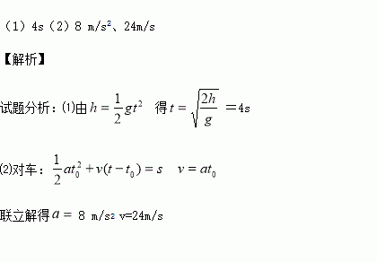 特技演员从高80m的大楼楼顶自由下落,在演员开始下落的同时汽车从60m远处由静止向楼底先匀加速运动t0 =3s,再匀速行驶到楼底,演员刚好能落到汽车上(不计空气阻力,人和汽车看作质点,g取10m/s2),求: