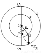 Ra£¬»·Éϸ÷ÓÐÒ»¸ö´©¿×СÇòA¡¢B(ͼÖÐBÇòδ»³ö)£¬¾ùÄÜÑØ»·ÎÞĦ²Á»¬¶¯¡£Èç¹ûͬÐÄÔ²»·ÈÆÊúÖ±ÖáO1O2ÒÔ½ÇËٶȦØÔÈËÙÐýת£¬Á½ÇòÏà¶ÔÓÚÌú»·¾²Ö¹Ê±£¬ÇòAËùÔÚ°ë¾¶OAÓëO1O2³É¦È=300½Ç¡£Ôò( )