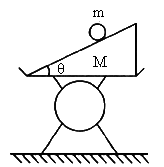 如图所示,在台秤的托盘上放一底面粗糙、倾角为θ的斜面体,质量为M,斜面上放一个质量为m的物体.如果斜面光滑,求物体从斜面上滑下过程中台秤的读数.