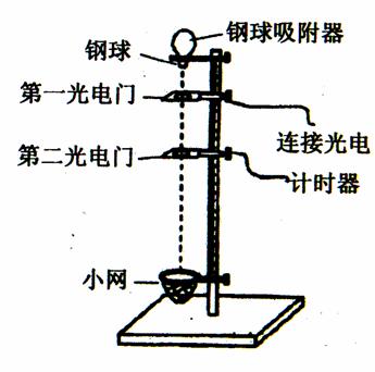 ÀûÓùâµç¼ÆÊ±Æ÷²âÁ¿ÖØÁ¦¼ÓËٶȵÄʵÑé×°ÖÃÈçͼËùʾ£¬Ëù¸øÆ÷²ÄÓУºÌú¼Ų̈£¬¸ÖÇòÎü¸½Æ÷£¨¹Ì¶¨ÔÚÌú¼Ų̈¶¥¶Ë£¬¿Éʹ¸ÖÇòÔÚ±»Îü¸½Ò»¶Îʱ¼äºóÓɾ²Ö¹¿ªÊ¼×ÔÓÉÏÂÂ䣩£¬Á½¸ö¹âµçÃÅ£¨Á¬½Ó¹âµç¼ÆÊ±Æ÷£©£¬½Ó¸ÖÇòÓõÄÐ¡Íø£¬¿Ì¶È³ß¡£ÊµÑéʱ£¬½«µÚÒ»¹âµçÃŹ̶¨ÔÚ¿¿½ü¸ÖÇò¿ªÊ¼ÏÂÂäµÄλÖ㬸ÖÇòÏÂÂäºóÓɹâµçÃŲâÁ¿³ö¸ÖÇò¾¹ýÁ½¹âµçÃÅʱµÄµ²¹âʱ¼ä