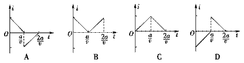 ÈçͼËùʾ£¬ÔÚ×ø±êϵxOyÖУ¬Óб߳¤ÎªaµÄÕý·½ÐνðÊôÏß¿òabcd£¬ÆäÒ»Ìõ¶Ô½ÇÏßacºÍyÖáÖØºÏ¡¢¶¥µãaλÓÚ×ø±êÔµãO´¦¡£ÔÚyÖáµÄÓÒ²àµÄ¢ñ¡¢¢ôÏóÏÞÄÚÓÐÒ»´¹Ö±Ö½ÃæÏòÀïµÄÔÈÇ¿´Å³¡£¬´Å³¡µÄÉϱ߽çÓëÏß¿òµÄab±ß¸ÕºÃÍêÈ«ÖØºÏ£¬×ó±ß½çÓëyÖáÖØºÏ£¬Óұ߽çÓëyÖáÆ½ÐУ¬t£½0ʱ¿Ì£¬ÏßȦÒԺ㶨µÄËÙ¶ÈvÑØ´¹Ö±Óڴų¡Éϱ߽çµÄ·½Ïò´©¹ý´Å³¡ÇøÓò¡£È¡ÑØa¡úb¡úc¡úd¡úaµÄ¸ÐÓ¦µçÁ÷·½ÏòΪÕý£¬ÔòÔÚÏßȦ´©Ô½´Å³¡ÇøÓòµÄ¹ý³ÌÖУ¬¸ÐÓ¦µçÁ÷iËæÊ±¼ät±ä»¯µÄͼÏßÊÇÏÂͼÖеÄ