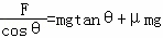 (2)由于滑块匀速运动时受力平衡,有:F=mgsinθ+μmgcosθ,
