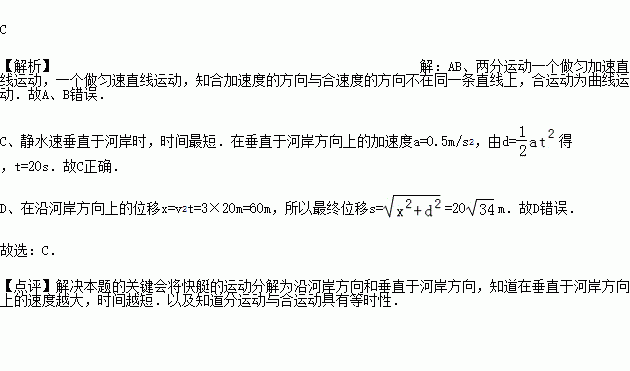 D.快艇最快到达岸边,经过的位移为100m