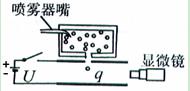 如图是密立根油滴实验的示意图。油滴从喷雾器的喷嘴喷出,落到图中的匀强电场中,调节两板间的电压,通过显微镜观察到某一油滴静止在电场中。下列说法正确的是( )
