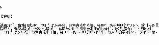 如图所示为一个多量程多用电表的简化电路图。单刀多掷开关S可以与不同接点连接。下列说法正确的是