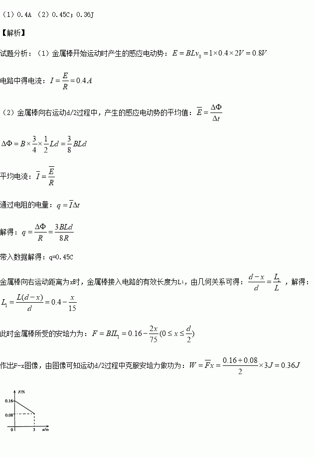(2)金属棒向右运动d/2过程中通过电阻 R的电量q及克服安培力做的功W;