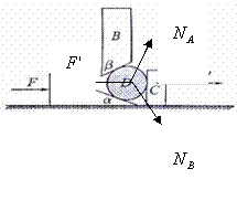 有一种机械装置,叫做“滚珠式力放大器”,其原理如图所示,斜面A可以在水平面上滑动,斜面B以及物块C都是被固定的,它们均由钢材制成,钢珠D置于A?B?C之间,当用水平力F推斜面A时,钢珠D对物块C的挤压力F′就会大于F,故称为“滚珠式力放大器”.如果斜面A?B的倾角分别为α?β,不计一切摩擦力以及钢珠D自身的重力,求这一装置的力放大倍数(即F′与F之比).![]()
