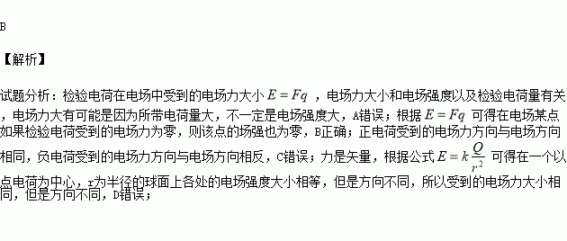 D.同一检验电荷在以一个点电荷为球心,半径为r的球面上各点所受电场力相同