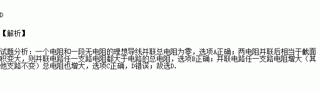 A. 一个电阻和一段无电阻的理想导线并联总电阻为零