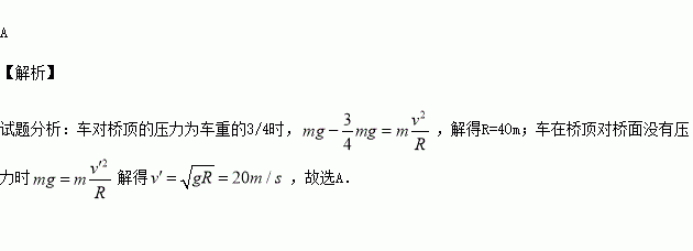 一汽车通过拱形桥顶点时速度为10 m/s,车对桥顶的压力为车重的3/4 ,要使汽车通过桥