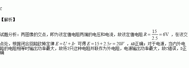 D.将3只这种电阻并联作为外电阻,电源输出功率最大