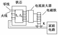 某同学设计的家庭电路保护装置如图所示,铁芯左侧线圈L1由火线和零线并行绕成.当右侧线圈L2中产生电流时,电流经放大器放大后,使电磁铁吸起铁质开关K,从而切断家庭电路.仅考虑L1在铁芯中产生的磁场,下列说法正确的有( )