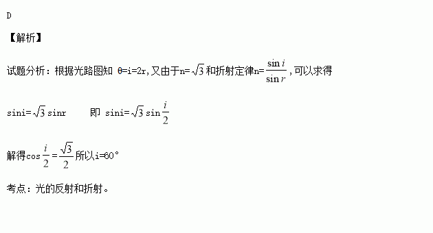 £¬ÎªÊ¹ÈëÉäµÄ³µµÆ¹âÏß¾²£Á§ÖéÕÛÉä¡ú·´Éä¡úÔÙÕÛÉäºóÇ¡ºÃºÍÈëÉä¹âÏ߯½ÐУ¬µÚÒ»´ÎÈëÉäʱµÄÈëÉä½ÇiÓ¦ÊÇ£¨ £©
