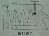 一竖直悬挂的弹簧振子,下端装有一记录笔,在竖直面内放置有一记录纸。当振子上下振动时,以速率水平向左拉动记录纸,记录笔在纸上留下如题11图2所示的图象。y1、y2、x0、2x0为纸上印迹的位置坐标。由此求振动的周期和振幅。