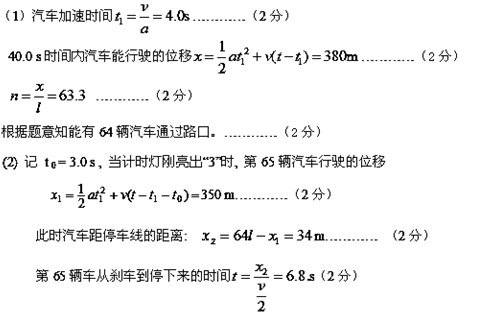ÔÚ¹«Â·µÄÊ®×Ö·¿Ú, ºìµÆÀ¹Í£Á˺ܶàÆû³µ, À¹Í£µÄÆû³µÅųɱÊÖ±µÄÒ»ÁÐ, ×îÇ°ÃæµÄÒ»Á¾Æû³µµÄǰ¶Ë¸ÕºÃÓë·¿ÚÍ£³µÏßÏàÆë, ÏàÁÚÁ½³µµÄǰ¶ËÖ®¼äµÄ¾àÀë¾ùΪ= 6.0 m£¬ÈôÆû³µÆð¶¯Ê±¶¼ÒÔa =2.5m/s2 µÄ¼ÓËÙ¶È×÷ÔȼÓËÙÔ˶¯, ¼ÓËÙµ½v=10.0 m/s ºó×öÔÈËÙÔ˶¯Í¨¹ý·¿Ú¡£¸Ã·¿ÚÁÁÂ̵ÆÊ±¼ät = 40.0 s, ¶øÇÒÓа´µ¹¼ÆÊ±ÏÔʾµÄʱ¼äÏÔʾµÆ£¨Î޻Ƶƣ©¡£ ÁíÍ⽻ͨ¹æÔò¹æ¶¨£ºÔÔÚÂ̵ÆÊ±Í¨ÐÐµÄÆû³µ£¬ºìµÆÁÁÆðʱ, ³µÍ·ÒÑÔ½¹ýÍ£³µÏߵįû³µÔÊÐíͨ¹ý¡£