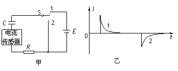 °ÑÒ»¸öµçÈÝÆ÷¡¢µçÁ÷´«¸ÐÆ÷¡¢µç×è¡¢µçÔ´¡¢µ¥µ¶Ë«ÖÀ¿ª¹Ø°´Í¼¼×ËùʾÁ¬½Ó¡£ÏÈʹ¿ª¹ØSÓë1¶ËÏàÁ¬£¬µçÔ´ÏòµçÈÝÆ÷³äµç£»È»ºó°Ñ¿ª¹ØSÖÀÏò2¶Ë£¬µçÈÝÆ÷·Åµç¡£ÓëµçÁ÷´«¸ÐÆ÷ÏàÁ¬½ÓµÄ¼ÆËã»úËù¼Ç¼ÕâÒ»¹ý³ÌÖеçÁ÷ËæÊ±¼ä±ä»¯µÄI-tÇúÏßÈçͼÒÒËùʾ¡£ÏÂÁйØÓÚÕâÒ»¹ý³ÌµÄ·ÖÎö£¬ÕýÈ·µÄÊÇ