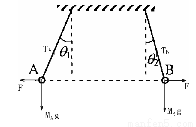 如图,质量分别为mA和mB的两小球带有同种电荷,电荷量分别为qA和qB,用绝缘细线悬挂在天花板上较远的两点。平衡时,两小球恰处于同一水平位置,细线与竖直方向间夹角分别为?1与?2(?1>?2)。两小球突然失去各自所带电荷后开始摆动,最大速度分别为vA和vB,最大动能分别为EkA和EkB。则( )