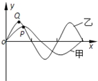 如图所示为某时刻从O点同时发出的两列简谐横波在同一介质中沿相同方向传播的波形图,P点在甲波最大位移处,Q点在乙波最大位移处,下列说法中正确的是 。(填正确答案标号。选对1个得3分,选对2个得4分,选对3个得6分。每选错1个扣3分,最低得分为0分)