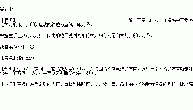 放射源中有三种不同的粒子,其中一种不带电,另两种分别带正负电荷,置于磁场中,相成如图三条轨迹,则不带电的粒子的轨迹是 ,带负电的粒子的轨迹是 .