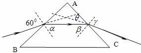 的入射角从AB 侧面的中点射入,折射后再从AC侧面射出,出射光线偏离入射光线的角度为