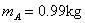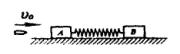 一轻质弹簧,两端连接两滑块A和B,已知mA=0.99kg , mB=3kg,放在光滑水平桌面上,开始时弹簧处于原长。现滑块A被水平飞来的质量为mC=10g,速度为400m/s的子弹击中,且没有穿出,如图所示,试求: