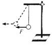 一铁架台放在水平地面上,其上用轻质细线悬挂一小球,开始时细线竖直。现将水平F作用于小球上,使其缓慢地由实线位置运动到虚线位置,铁架台始终保持静止。则在这一过程中( )