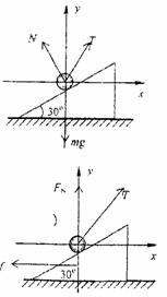 (1)当劈静止时绳子的张力及小球对斜面的压力各为多大?