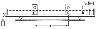 (8分)为了探究加速度与力的关系,使用如图所示的气垫导轨装置进行实验.其中G1、G2为两个光电门,它们与数字计时器相连,当滑行器通过G1、G2光电门时,光束被遮挡的时间Δt1、Δt2都可以被测量并记录,滑行器连同上面固定的一条形挡光片的总质量为M,挡光片宽度为D,光电门间距离为x,牵引砝码的质量为m.回答下列问题: