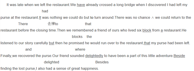 修改:在错的词下划一横线,并在该词下面写出修改后的词。