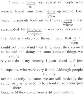 修改:在错的词下划一横线,并在该词下面写出修改后的词。