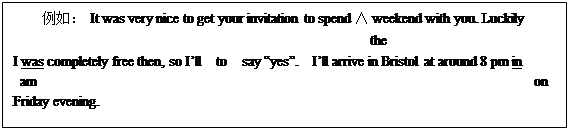 | 例如:It was very nice to get your invitation to spend the am completely free then, so I’ll on |