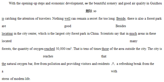 修改:在错的词下划一横线,并在该词下面写出修改后的词。