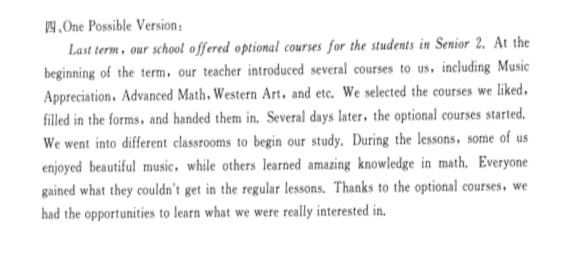 【题目】假设你是红星中学高二(1)班的学生李华,下面四幅图描述了上学期高二年级开设选修课的过程。请根据图片的先后顺序,为校刊“英语园地”写一篇短文。词数不少于60。开头已给出,不计入总词数。