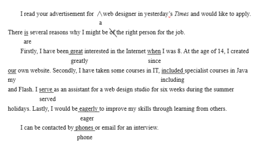 这是一封求职信。“我”在昨天的《泰晤士报》上看到一则招聘网页设计师的广告“我”想申请并陈述了自己是合适人选的原因。