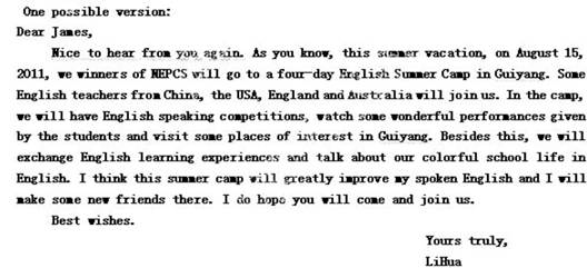 ¼ÙÉèÄã½ÐÀ£¬ÄãµÄ¼ÓÄôó±ÊÓÑJamesÏëÁ˽âÒ»ÏÂÄ㽫²Î¼ÓµÄ2011ÄêÈ«¹úÖÐѧÉúÓ¢ÓïÏÄÁîÓªµÄÓйØÐÅÏ¢£¬ÇëÄã¸ù¾ÝÏÂÃæµÄº£±¨¸øËûдһ·âÐÅ£¬Ì¸Ì¸ÓйØÇé¿öºÍ»î¶¯ÒâÒ壬²¢ÑûÇëËû²Î¼ÓÄãÃǵĻ¡£