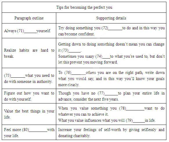 Figure out what you want to do with yourself. This doesn’t mean that you need to map out your entire life in advance. Consider the next five years. Where do you want to be? What does your life look like? If you evaluate(评价) yourself properly, you can decide on the best course of action to get where you want be.
