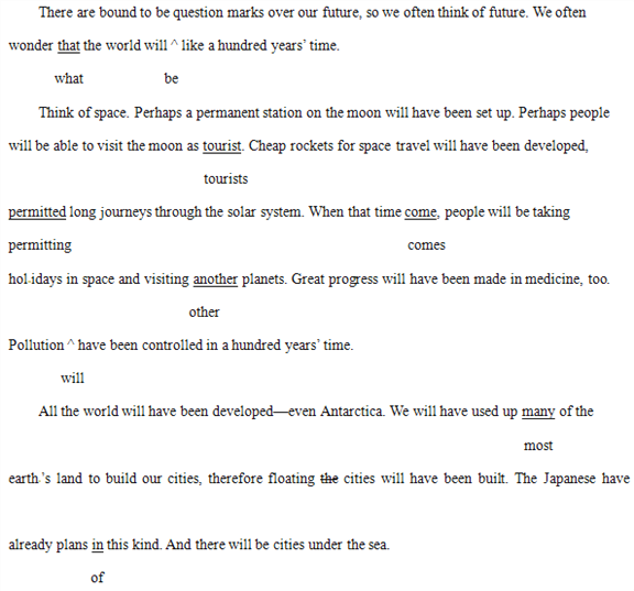 All the world will have been developed¡ªeven Antarctica. We will have used up many of the earth¡¯s land to build our cities, therefore floating the cities will have been built. The Japanese have already plans in this kind. And there will be cities under the sea.
