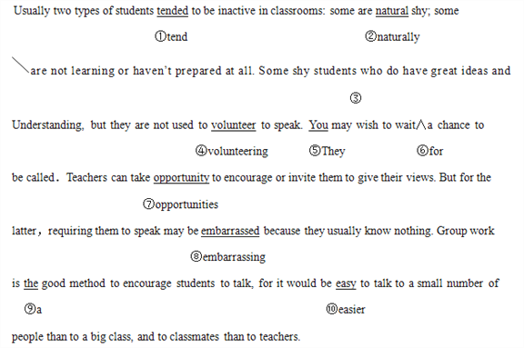 3.文章第二句Some shy students who do have great ideas and understanding, but they are not used to volunteer to speak.是并列句,前半句应该是一个简单句,而不是定语从句,故把前半句中的who去掉。