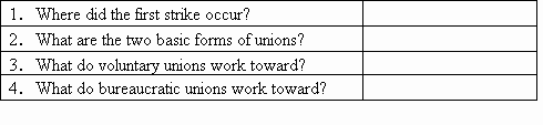 Written records indicate that in 1153B. C., workers in the city of Thebes, Egypt protested receiving the same food every day, as well as their 'overall working conditions. This was the first recorded disagreement between labor and management. About 800 years later, the first strike happened. Aristos, originally from Greece, led the strike in Rome against his master in protest of meal breaks which were too short. The tradition of organizing workers to protest unfair conditions has continued to the present. Today, labor unions stand up for the rights of workers using collective bargaining techniques. These unions, which exist all around the world, take two basic forms-voluntary unions, bureaucratic unions.