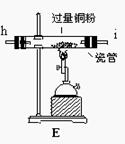 请将仪器连接的最佳顺序(按空气流向填各接口的编号)排列于右: →( )( )( )( )( )( )( )( )→a 。其中,D装置的作 用是: ;E装置的作用是: ;写出在C装置中发生化学反应的方程式: 。
