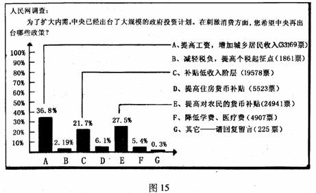 2009年2月28日,国务院总理温家宝通过中国政府网和新华网历史上首次与全球网民进行在线文字与视频交流。对于千千万万的网友来说,这一天是格外激动、兴奋并且温暖的一天,他们通过互联网在2个小时之内听总理用心说真话,说心里话,让他们第一次以这种形式领略一个大国总理的风采和风度。下面是对话前夕人民网的调查问题之一。