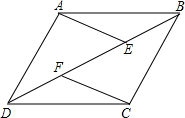 已知:如图,E、F是四边形ABCD的对角线AC上的两点,AF=CE,DF=BE,DF∥BE.![]()