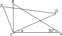 (2011•宁德)如图,△ABC中,∠ACB=90°,∠A=30°,将△ABC绕C点按逆时针方向旋转α角(0°<α<90°)得到△DEC,设CD交AB于F,连接AD,当旋转角α度数为