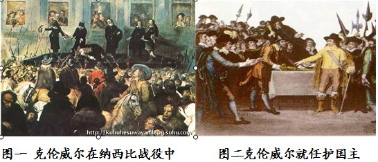 图一 克伦威尔在纳西比战役中 图二克伦威尔就任护国主