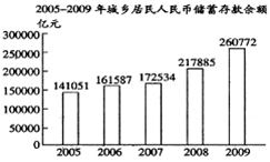 材料一:据中国人民银行公布的数据显示,截至到2008年我国城乡居民人民币储蓄存款余额为217885亿元,同比增长26.3%。
